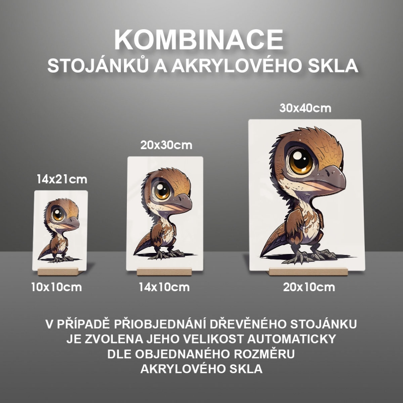V případě přiobjednání dřevěného stojánku je zvolena jeho velikost automaticky dle objednaného rozměru akrylového skla viz produktové foto.