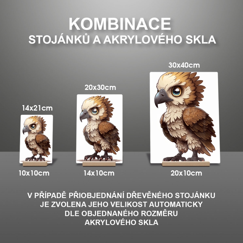 V případě přiobjednání dřevěného stojánku je zvolena jeho velikost automaticky dle objednaného rozměru akrylového skla viz produktové foto.