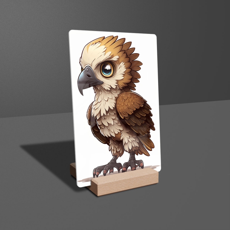 Na produktovém fotu vyobrazena nejoblíbenější varianta akrylového skla 14x21/21x14cm a dřevěný stojánek 10x10cm.
