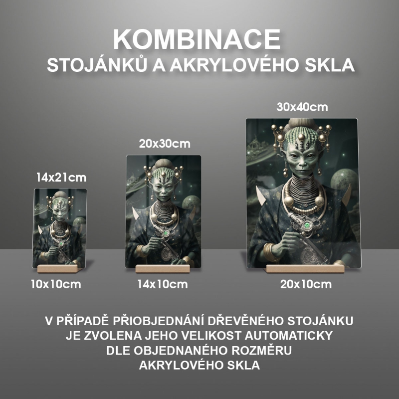 V případě přiobjednání dřevěného stojánku je zvolena jeho velikost automaticky dle objednaného rozměru akrylového skla viz produktové foto.