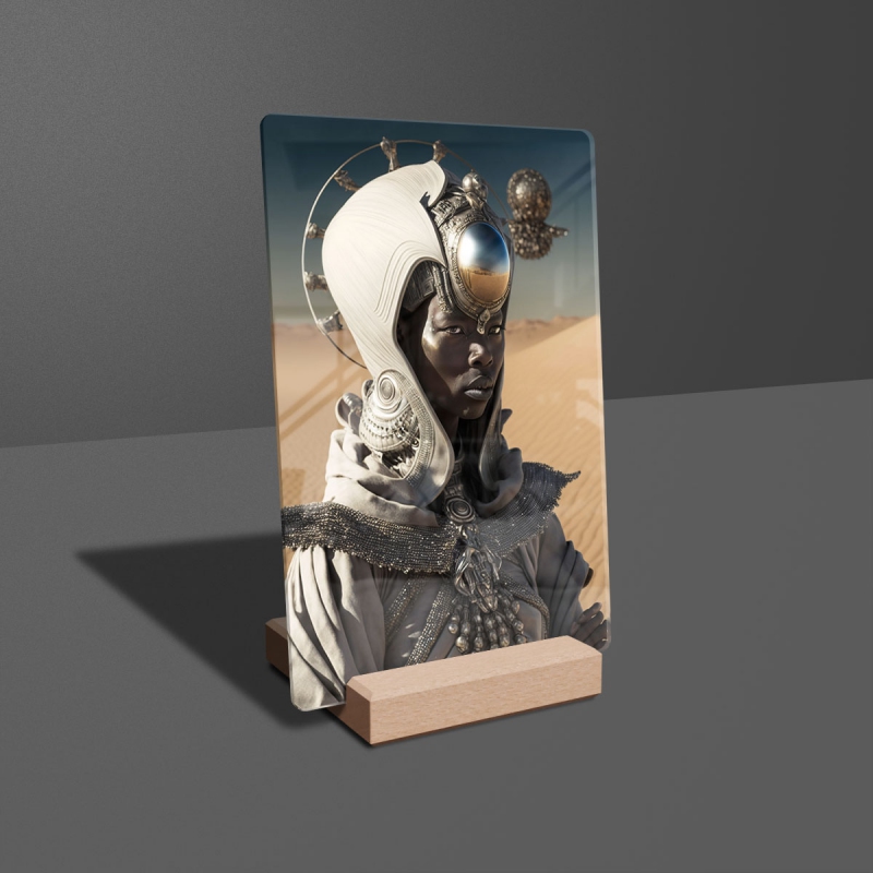 Na produktovém fotu vyobrazena nejoblíbenější varianta akrylového skla 14x21/21x14cm a dřevěný stojánek 10x10cm.
