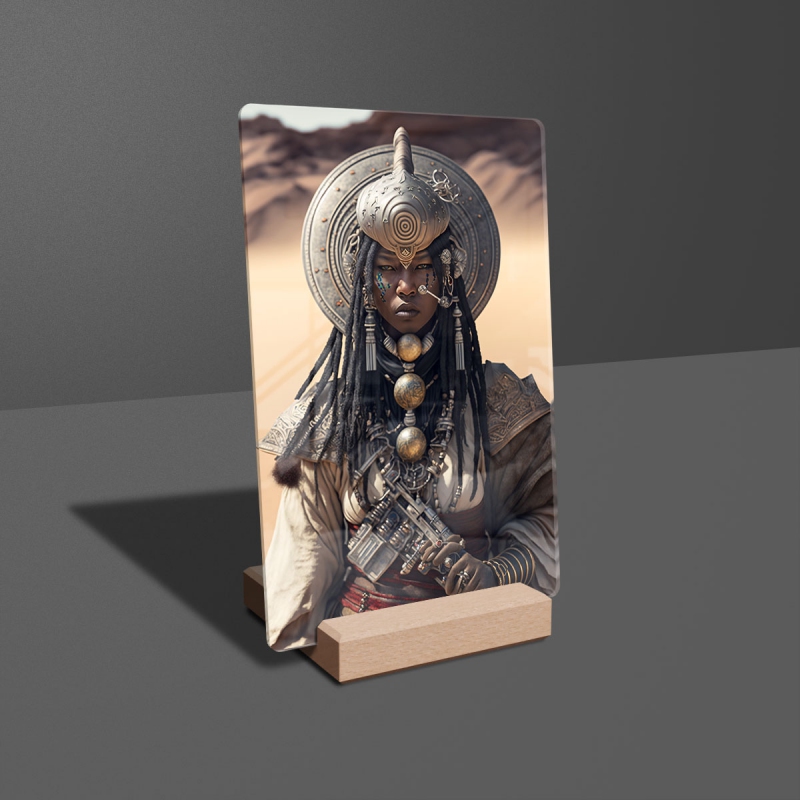 Na produktovém fotu vyobrazena nejoblíbenější varianta akrylového skla 14x21/21x14cm a dřevěný stojánek 10x10cm.