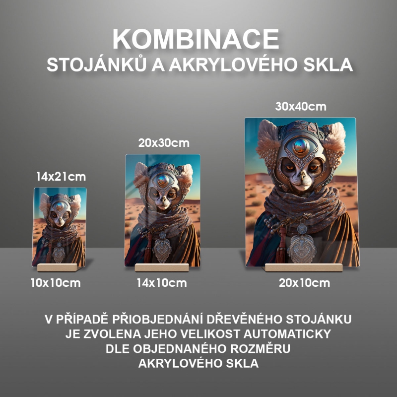 V případě přiobjednání dřevěného stojánku je zvolena jeho velikost automaticky dle objednaného rozměru akrylového skla viz produktové foto.