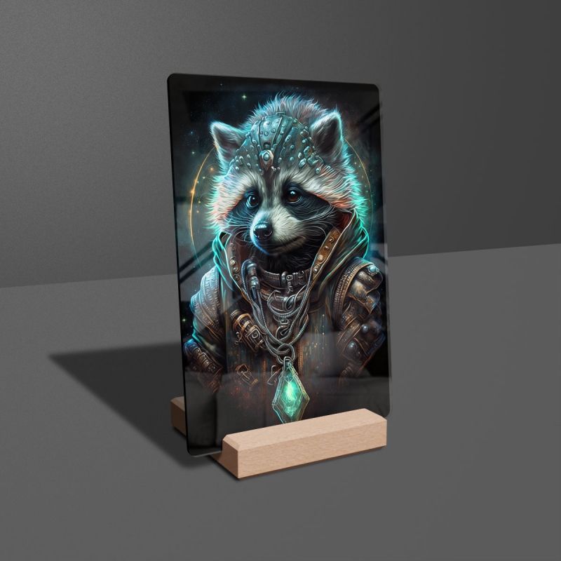 Na produktovém fotu vyobrazena nejoblíbenější varianta akrylového skla 14x21/21x14cm a dřevěný stojánek 10x10cm.