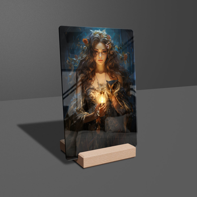Akrylové sklo mladá žena se sovou