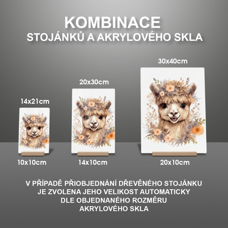 V případě přiobjednání dřevěného stojánku je zvolena jeho velikost automaticky dle objednaného rozměru akrylového skla viz produktové foto.