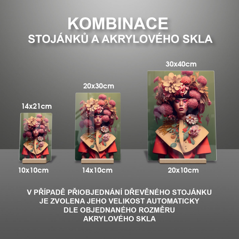 V případě přiobjednání dřevěného stojánku je zvolena jeho velikost automaticky dle objednaného rozměru akrylového skla viz produktové foto.