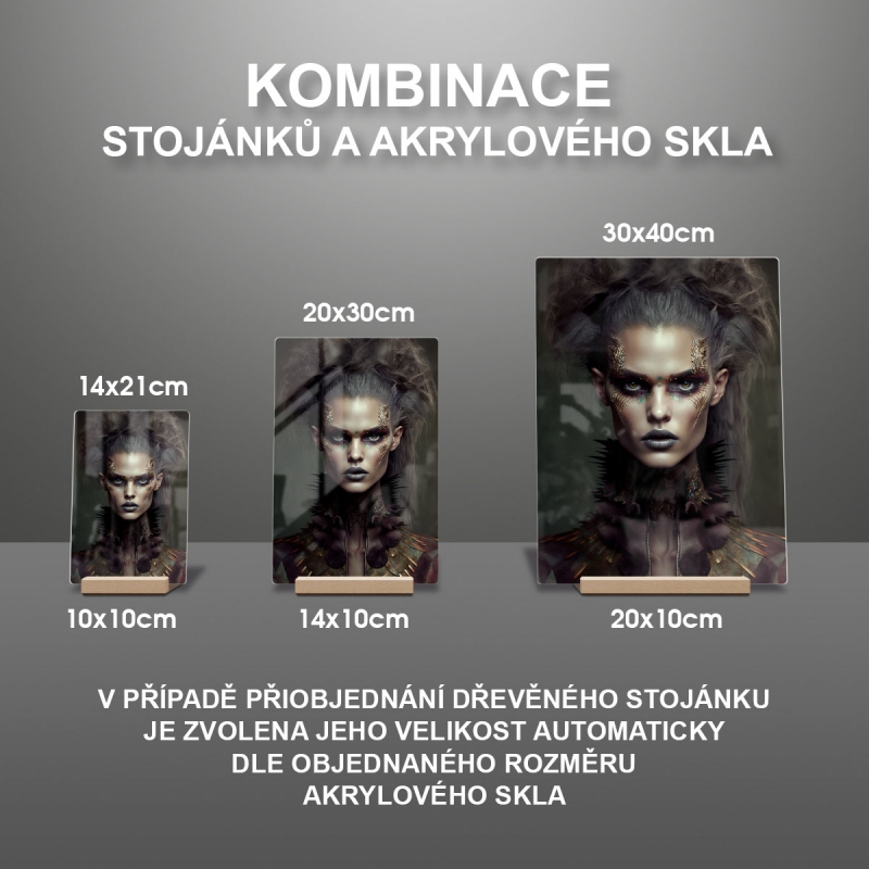 V případě přiobjednání dřevěného stojánku je zvolena jeho velikost automaticky dle objednaného rozměru akrylového skla viz produktové foto.