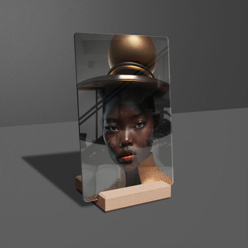 Na produktovém fotu vyobrazena nejoblíbenější varianta akrylového skla 14x21/21x14cm a dřevěný stojánek 10x10cm.