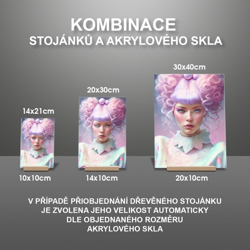 V případě přiobjednání dřevěného stojánku je zvolena jeho velikost automaticky dle objednaného rozměru akrylového skla viz produktové foto.