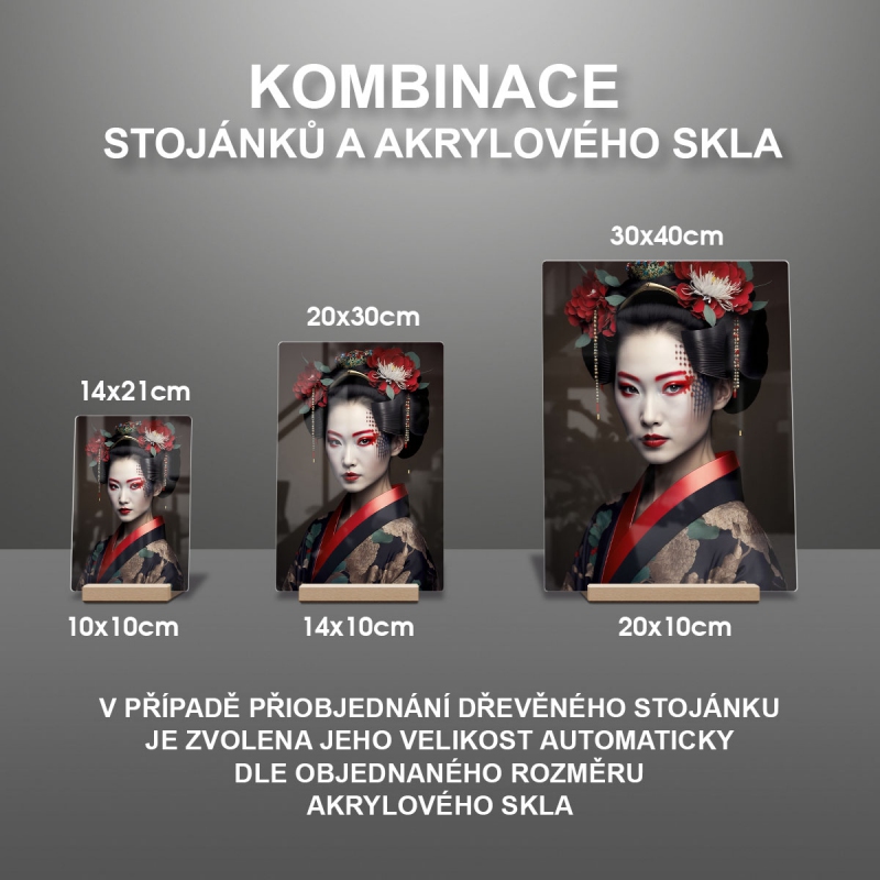 V případě přiobjednání dřevěného stojánku je zvolena jeho velikost automaticky dle objednaného rozměru akrylového skla viz produktové foto.