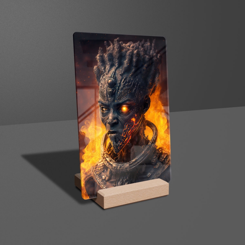 Na produktovém fotu vyobrazena nejoblíbenější varianta akrylového skla 14x21/21x14cm a dřevěný stojánek 10x10cm.