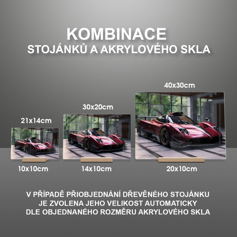 V případě přiobjednání dřevěného stojánku je zvolena jeho velikost automaticky dle objednaného rozměru akrylového skla viz produktové foto.