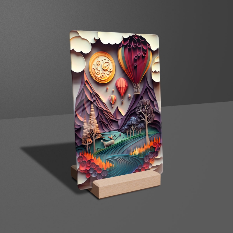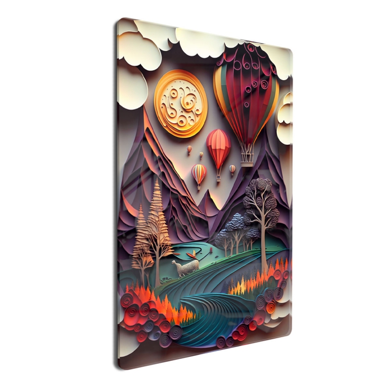 Akrylové sklo Papírová krajina - horkovzdušné balóny