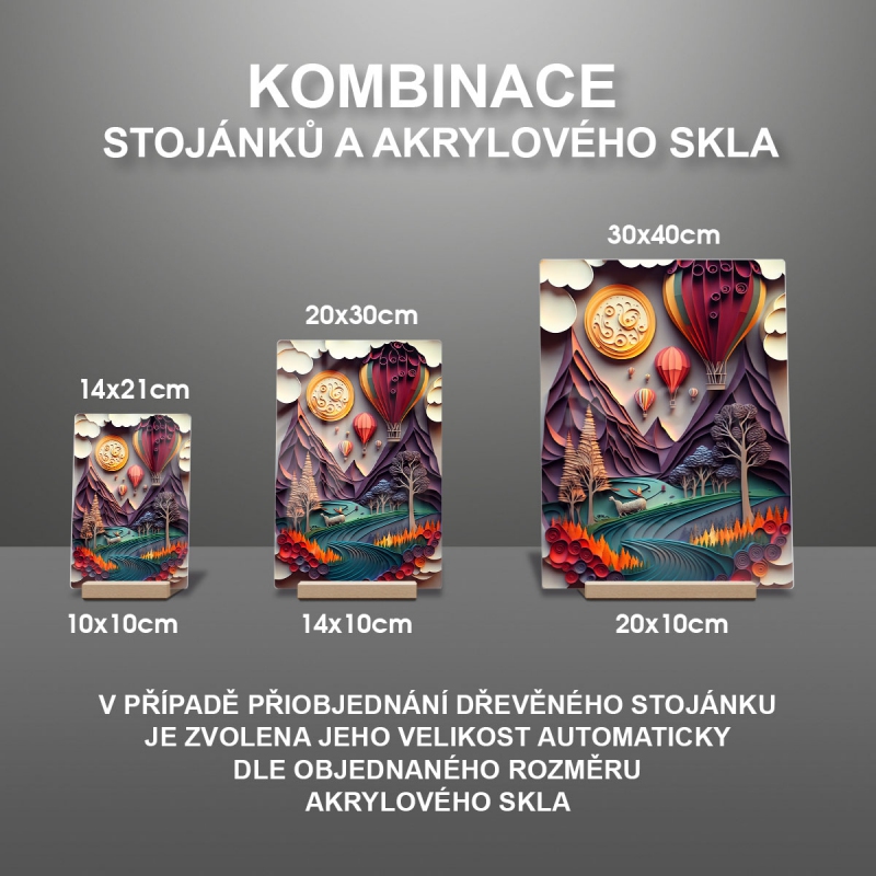 V případě přiobjednání dřevěného stojánku je zvolena jeho velikost automaticky dle objednaného rozměru akrylového skla viz produktové foto.