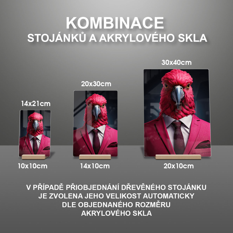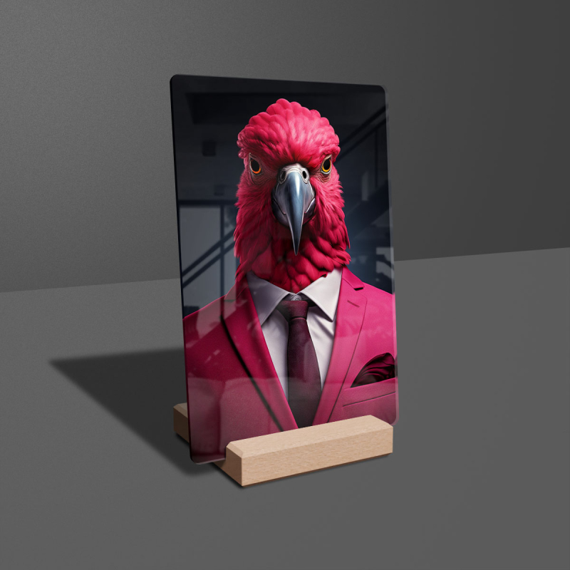 Akrylové sklo papoušek v obleku