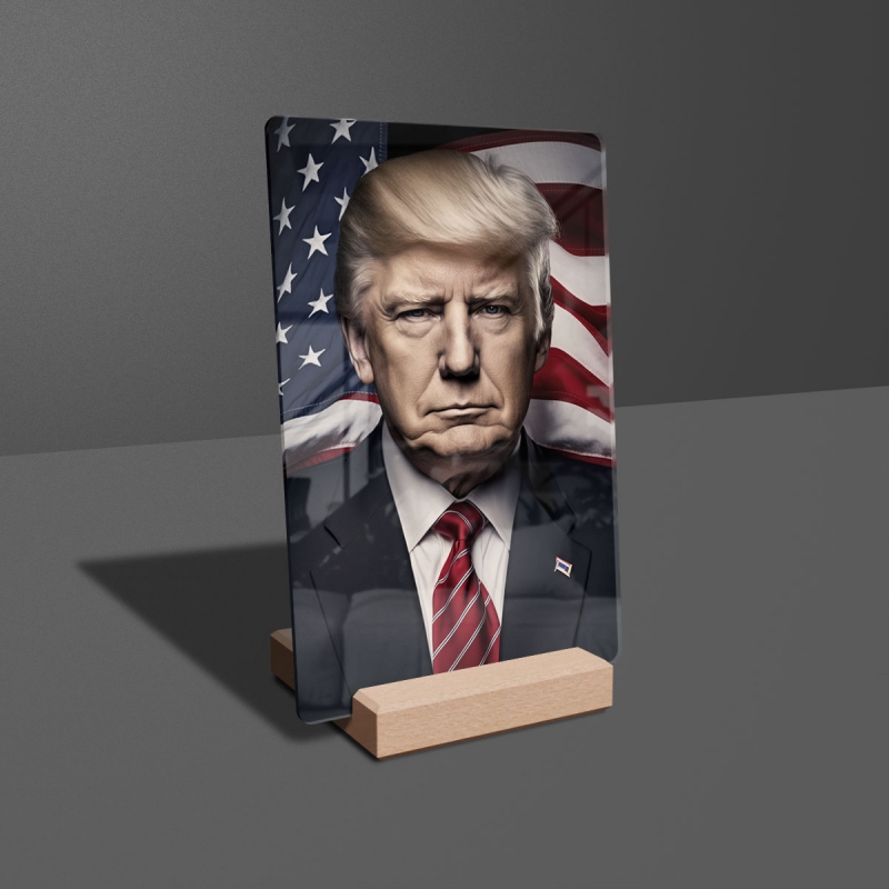 Na produktovém fotu vyobrazena nejoblíbenější varianta akrylového skla 14x21/21x14cm a dřevěný stojánek 10x10cm.