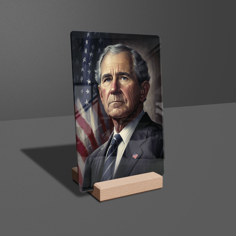 Na produktovém fotu vyobrazena nejoblíbenější varianta akrylového skla 14x21/21x14cm a dřevěný stojánek 10x10cm.