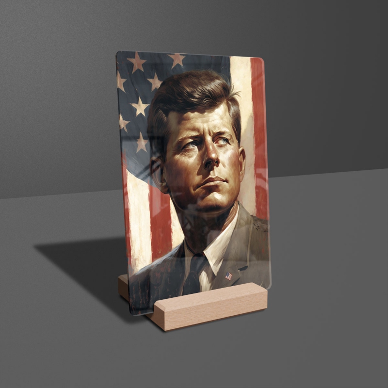 Na produktovém fotu vyobrazena nejoblíbenější varianta akrylového skla 14x21/21x14cm a dřevěný stojánek 10x10cm.