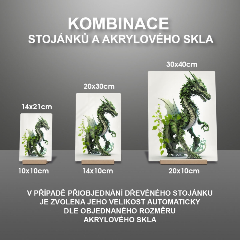 V případě přiobjednání dřevěného stojánku je zvolena jeho velikost automaticky dle objednaného rozměru akrylového skla viz produktové foto.