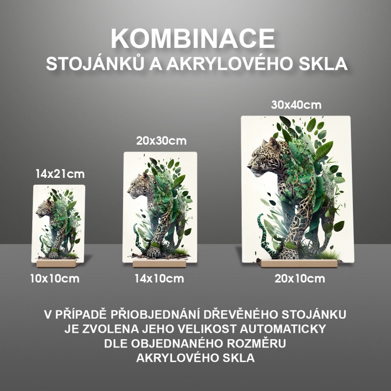 V případě přiobjednání dřevěného stojánku je zvolena jeho velikost automaticky dle objednaného rozměru akrylového skla viz produktové foto.