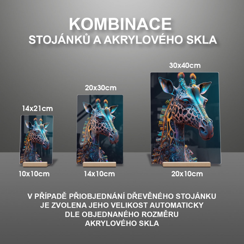 V případě přiobjednání dřevěného stojánku je zvolena jeho velikost automaticky dle objednaného rozměru akrylového skla viz produktové foto.