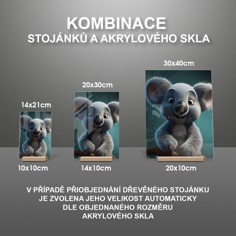 V případě přiobjednání dřevěného stojánku je zvolena jeho velikost automaticky dle objednaného rozměru akrylového skla viz produktové foto.