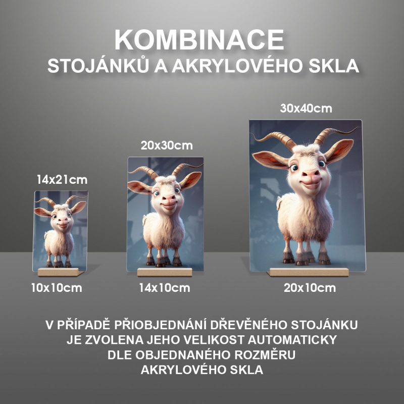V případě přiobjednání dřevěného stojánku je zvolena jeho velikost automaticky dle objednaného rozměru akrylového skla viz produktové foto.