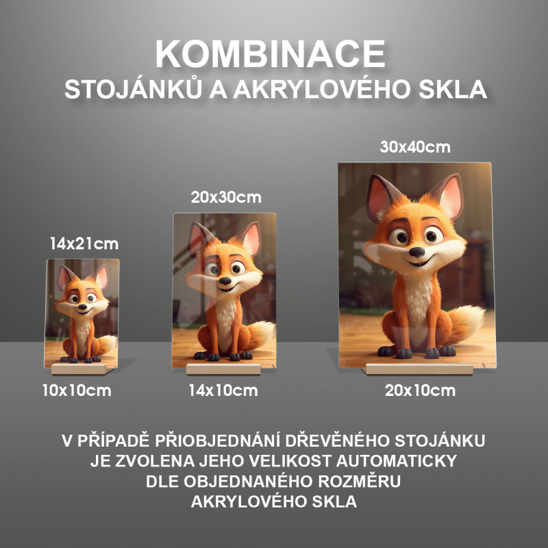 V případě přiobjednání dřevěného stojánku je zvolena jeho velikost automaticky dle objednaného rozměru akrylového skla viz produktové foto.