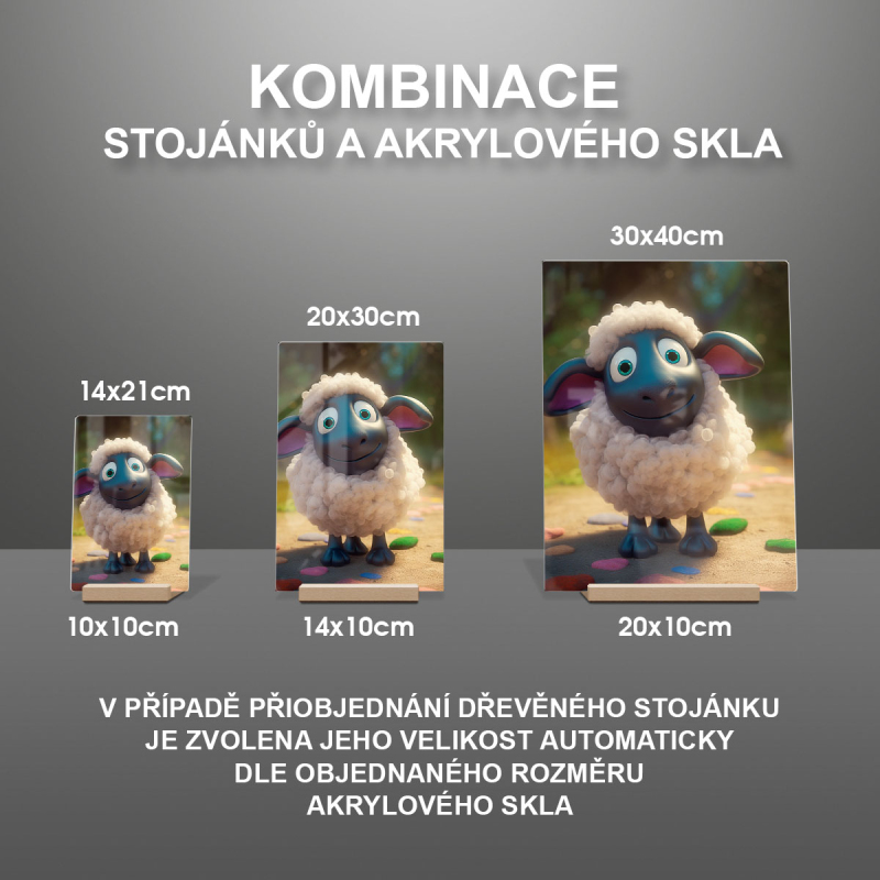 V případě přiobjednání dřevěného stojánku je zvolena jeho velikost automaticky dle objednaného rozměru akrylového skla viz produktové foto.