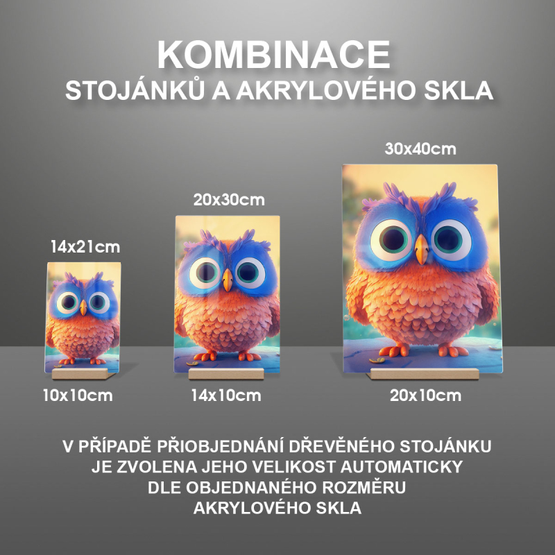 V případě přiobjednání dřevěného stojánku je zvolena jeho velikost automaticky dle objednaného rozměru akrylového skla viz produktové foto.