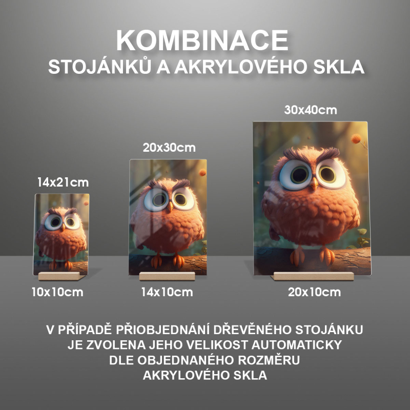 V případě přiobjednání dřevěného stojánku je zvolena jeho velikost automaticky dle objednaného rozměru akrylového skla viz produktové foto.