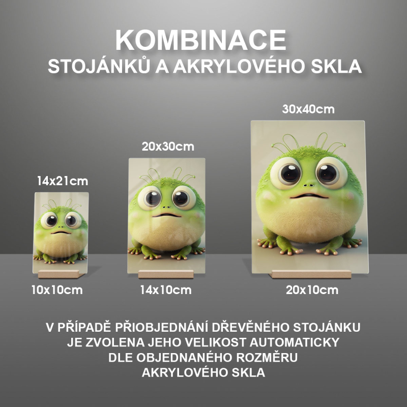 V případě přiobjednání dřevěného stojánku je zvolena jeho velikost automaticky dle objednaného rozměru akrylového skla viz produktové foto.