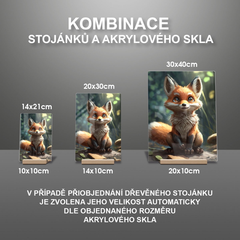 V případě přiobjednání dřevěného stojánku je zvolena jeho velikost automaticky dle objednaného rozměru akrylového skla viz produktové foto.