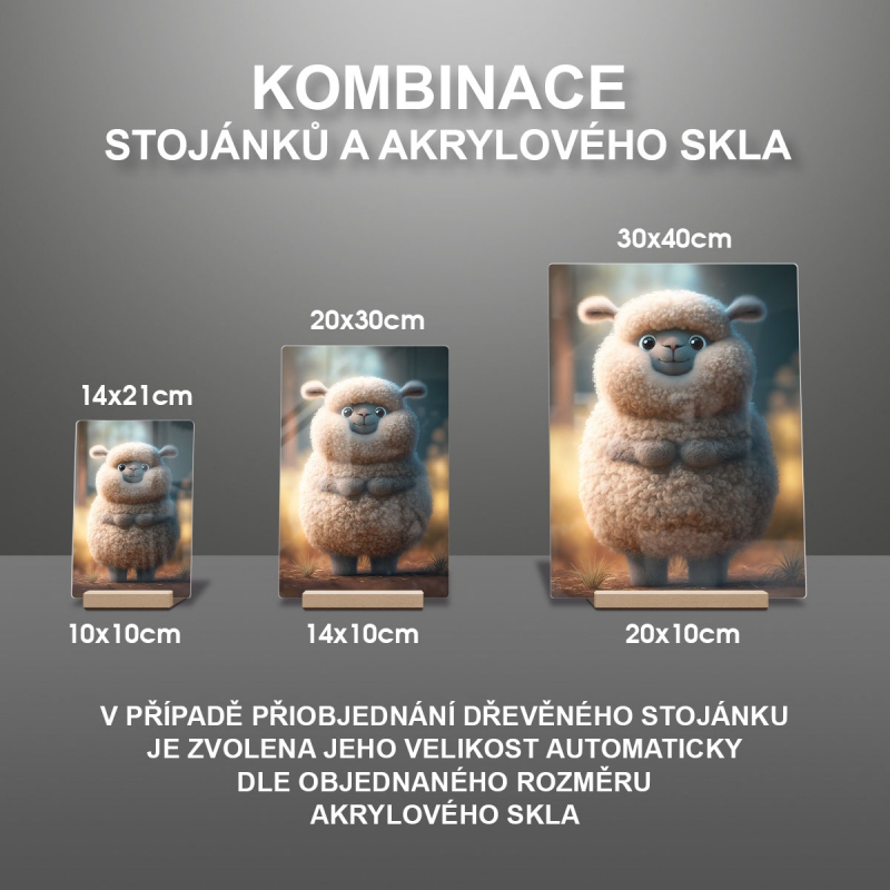 V případě přiobjednání dřevěného stojánku je zvolena jeho velikost automaticky dle objednaného rozměru akrylového skla viz produktové foto.