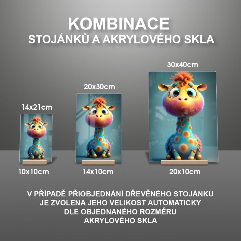 V případě přiobjednání dřevěného stojánku je zvolena jeho velikost automaticky dle objednaného rozměru akrylového skla viz produktové foto.