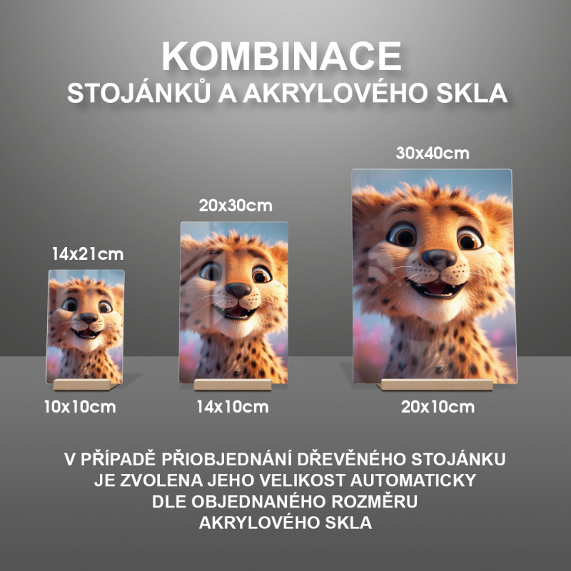 V případě přiobjednání dřevěného stojánku je zvolena jeho velikost automaticky dle objednaného rozměru akrylového skla viz produktové foto.