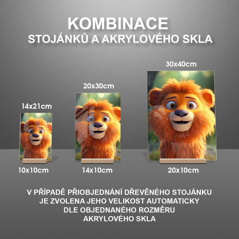 V případě přiobjednání dřevěného stojánku je zvolena jeho velikost automaticky dle objednaného rozměru akrylového skla viz produktové foto.
