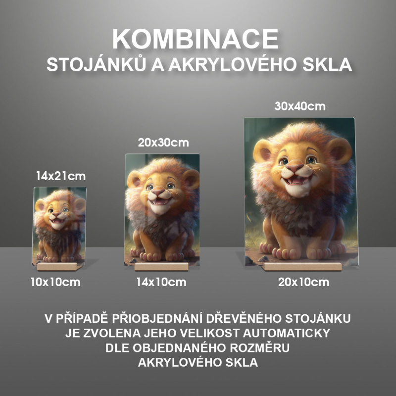 V případě přiobjednání dřevěného stojánku je zvolena jeho velikost automaticky dle objednaného rozměru akrylového skla viz produktové foto.