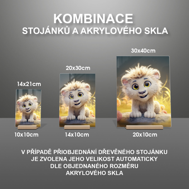 V případě přiobjednání dřevěného stojánku je zvolena jeho velikost automaticky dle objednaného rozměru akrylového skla viz produktové foto.