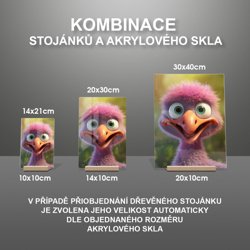 V případě přiobjednání dřevěného stojánku je zvolena jeho velikost automaticky dle objednaného rozměru akrylového skla viz produktové foto.