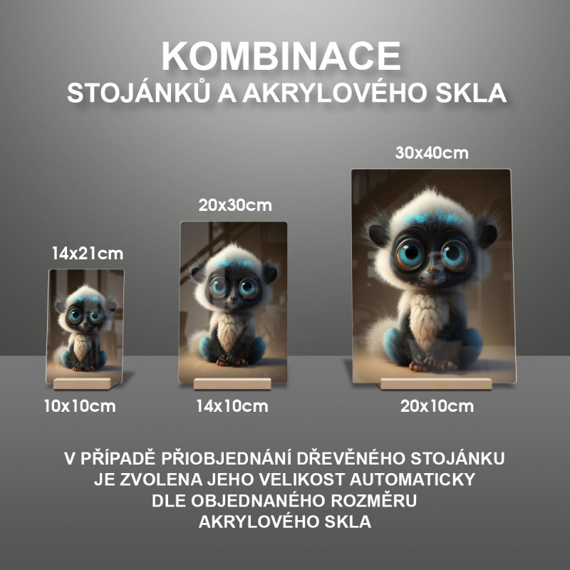 V případě přiobjednání dřevěného stojánku je zvolena jeho velikost automaticky dle objednaného rozměru akrylového skla viz produktové foto.