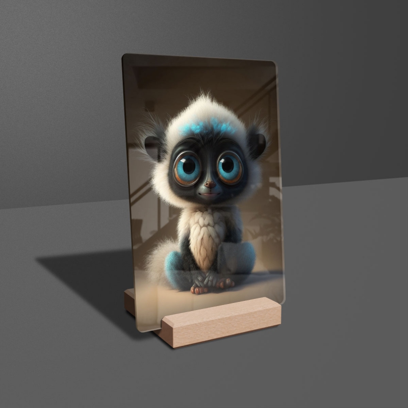 Na produktovém fotu vyobrazena nejoblíbenější varianta akrylového skla 14x21/21x14cm a dřevěný stojánek 10x10cm.