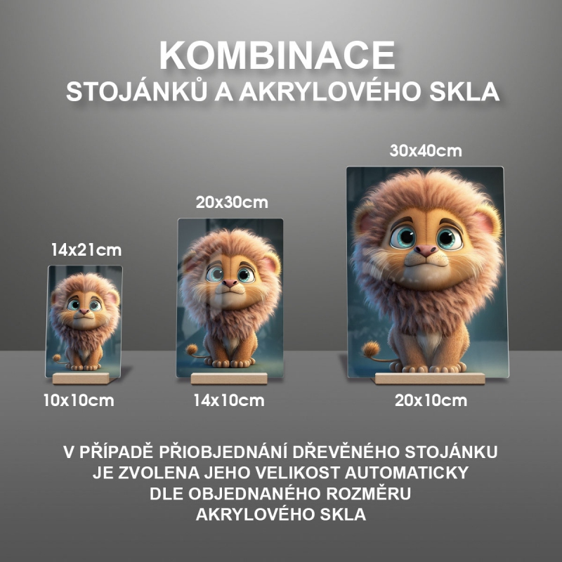 V případě přiobjednání dřevěného stojánku je zvolena jeho velikost automaticky dle objednaného rozměru akrylového skla viz produktové foto.