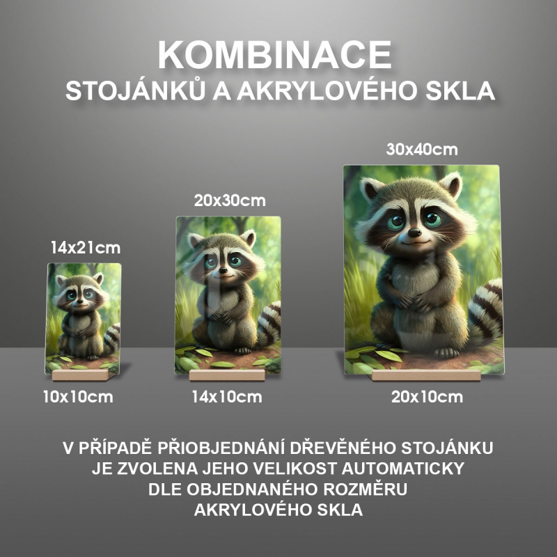 V případě přiobjednání dřevěného stojánku je zvolena jeho velikost automaticky dle objednaného rozměru akrylového skla viz produktové foto.