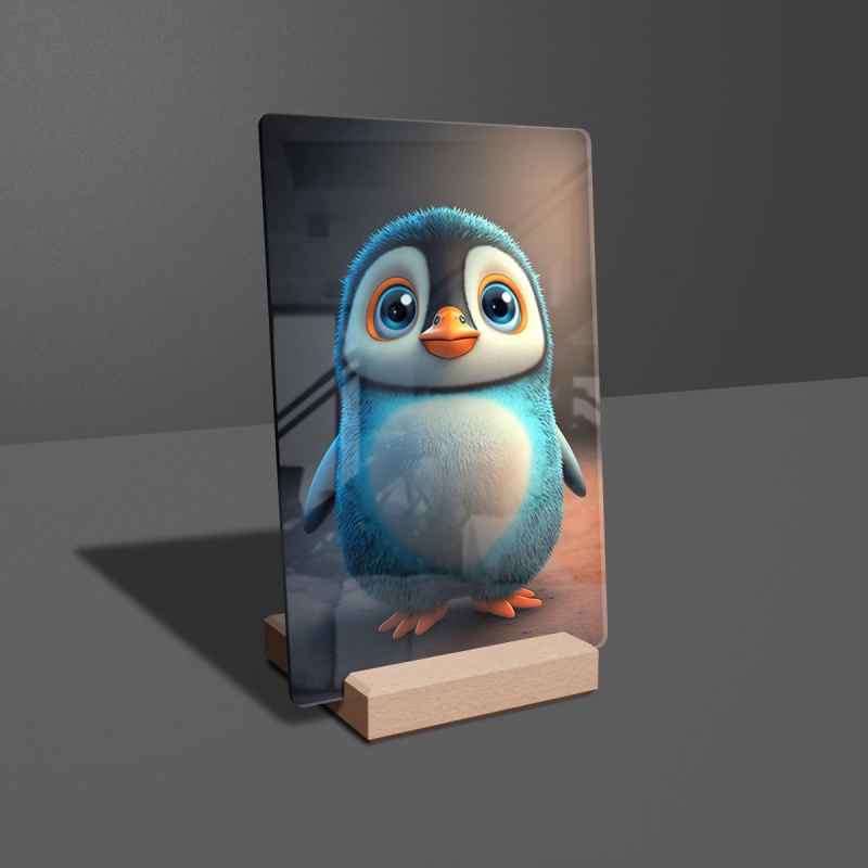 Na produktovém fotu vyobrazena nejoblíbenější varianta akrylového skla 14x21/21x14cm a dřevěný stojánek 10x10cm.