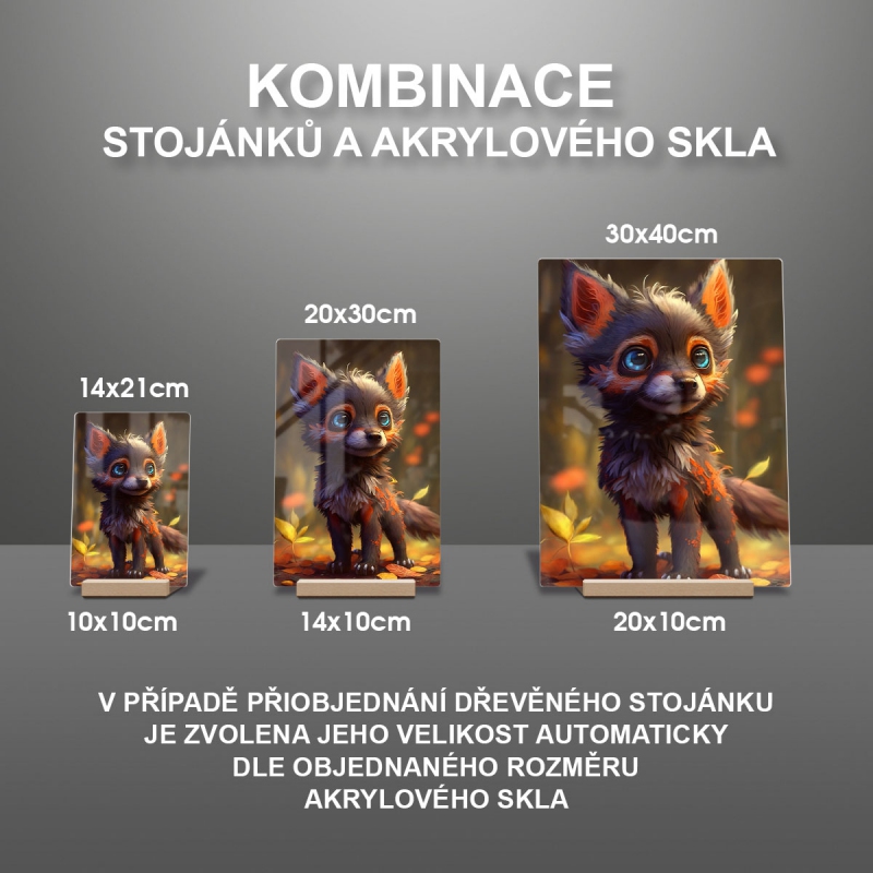 V případě přiobjednání dřevěného stojánku je zvolena jeho velikost automaticky dle objednaného rozměru akrylového skla viz produktové foto.