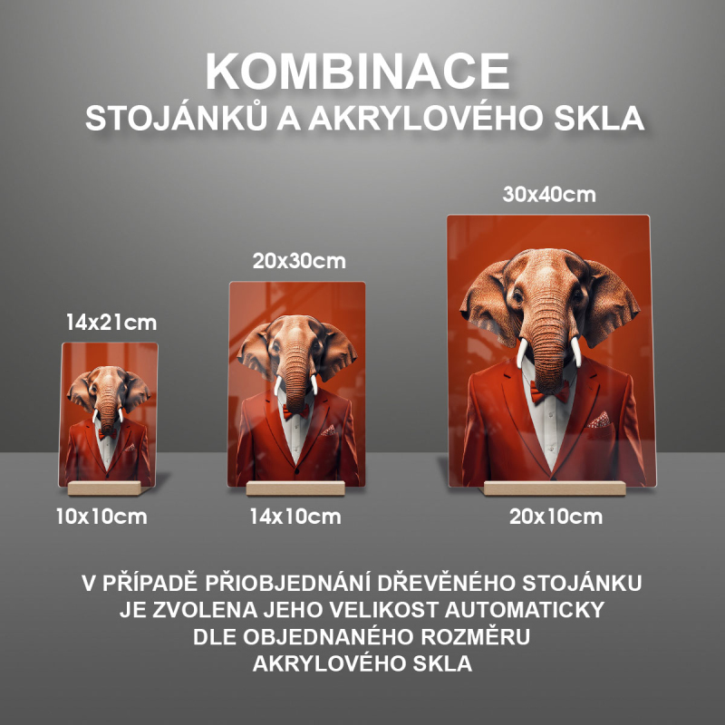 V případě přiobjednání dřevěného stojánku je zvolena jeho velikost automaticky dle objednaného rozměru akrylového skla viz produktové foto.