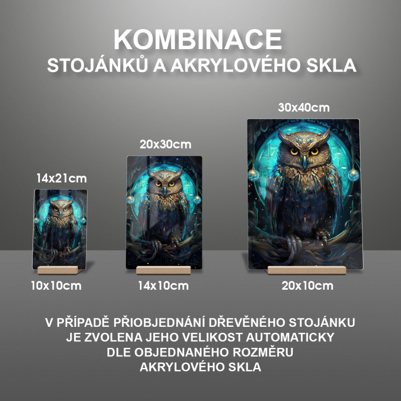 V případě přiobjednání dřevěného stojánku je zvolena jeho velikost automaticky dle objednaného rozměru akrylového skla viz produktové foto.