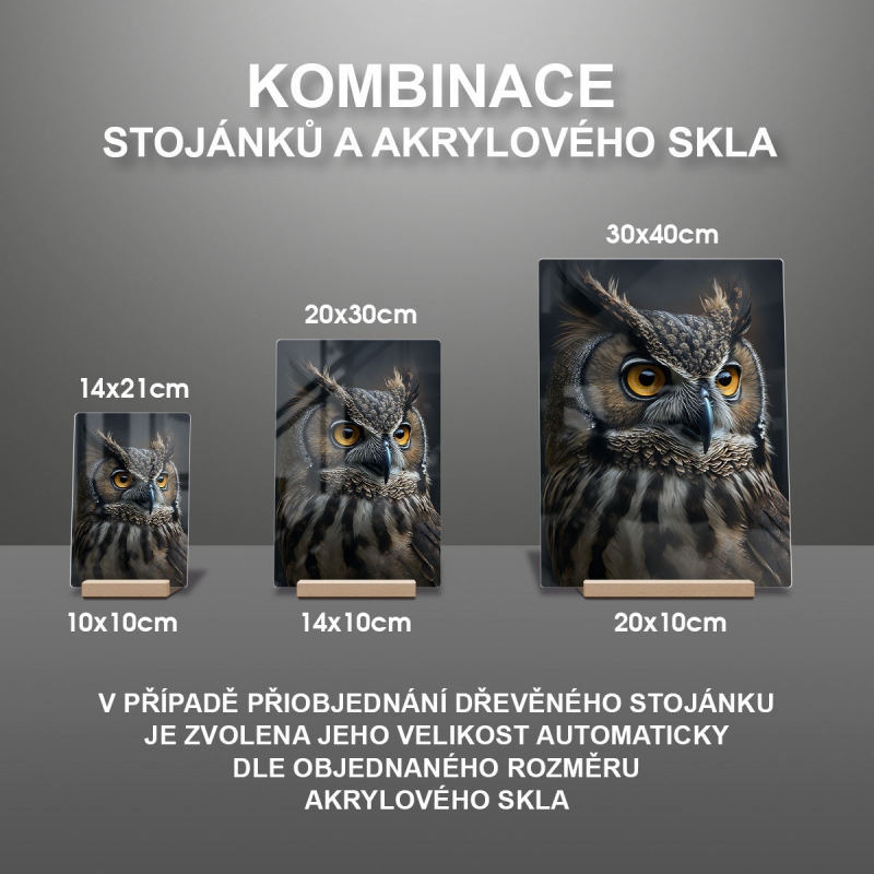 V případě přiobjednání dřevěného stojánku je zvolena jeho velikost automaticky dle objednaného rozměru akrylového skla viz produktové foto.